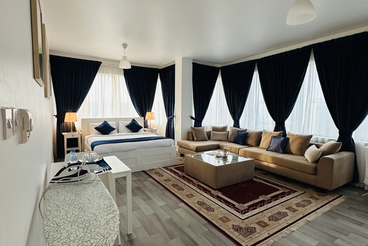Take advantage of our great city center location with easy access to public transportation, including a bus/taxi stand just down the street. Supermarkets and restaurants are conveniently located in the same building, with Madinat Zayed shopping center just a 5-minute walk away. Al Wahda mall is only a 2-minute drive, and the free beach is just 3-5 minutes away by car, with Corniche also close by. A hospital is conveniently located just opposite the building.
